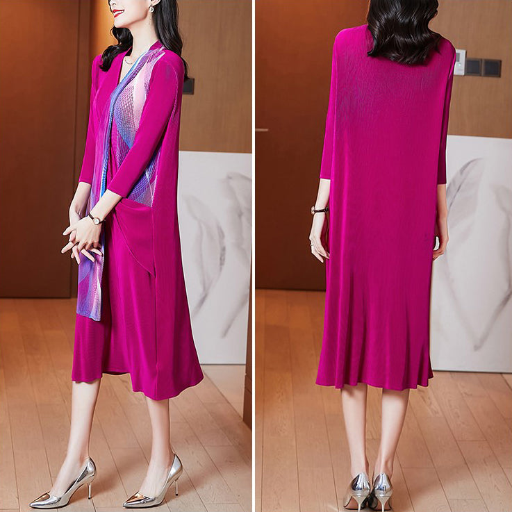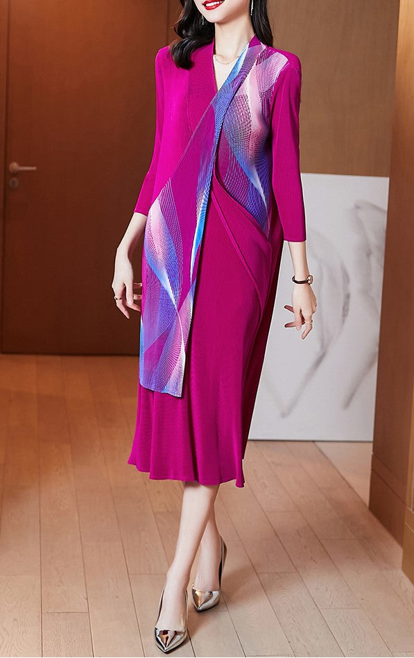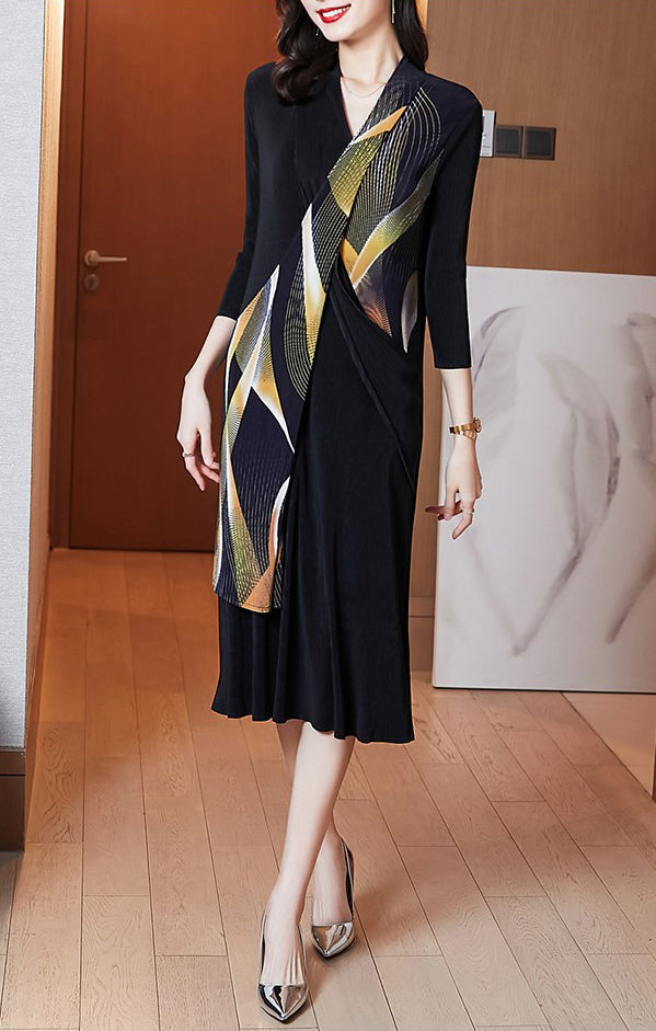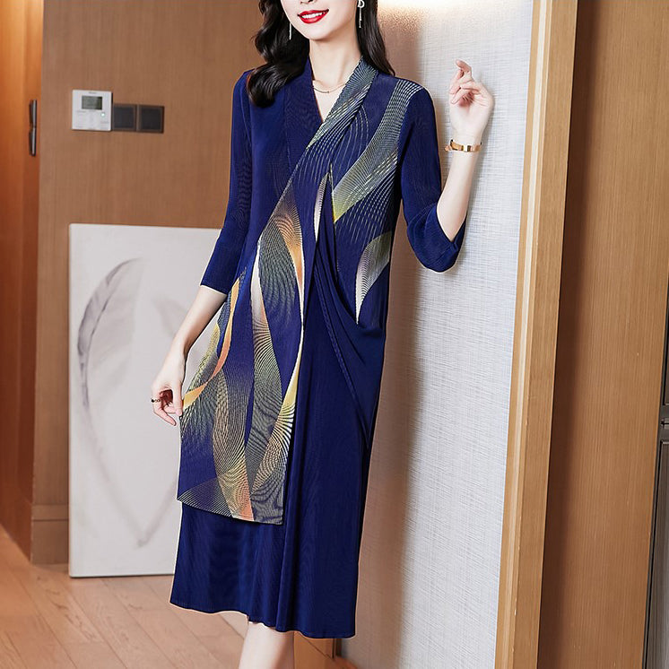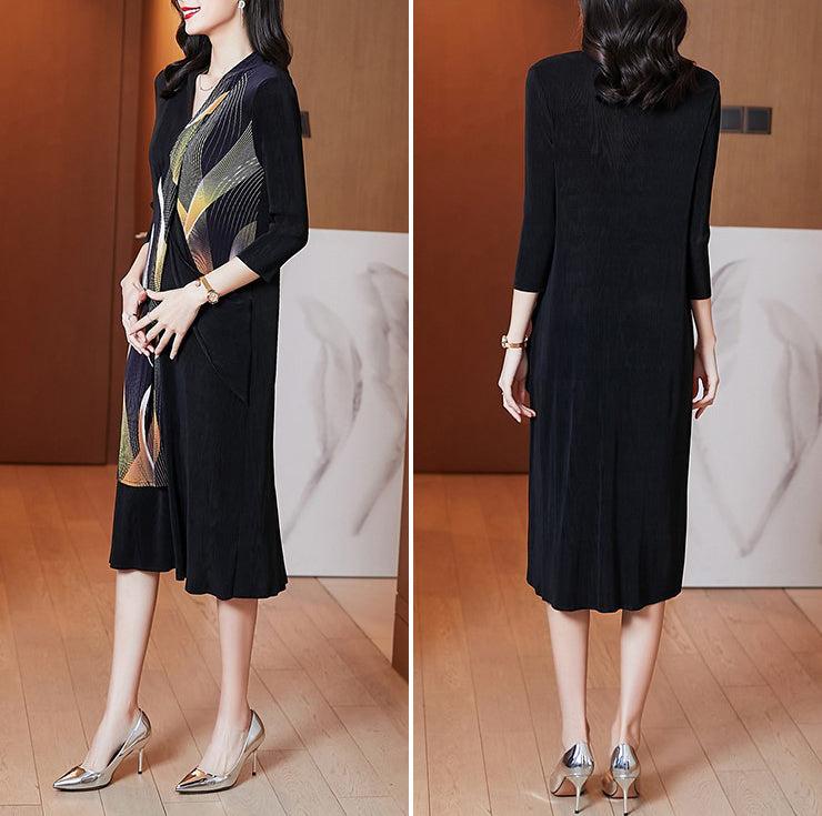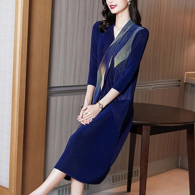 3/4 Sleeve V Neck Folded Floral Chinese Style Casual Dress Boho Dress
